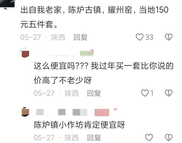 评论区好几位陕西ip的网友出来说:这些可都是我们陕西的特产,著名的铜川耀州瓷啊!